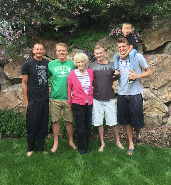 We then took some photos! That is my second favorite thing of the day. It is the first time in SIX YEARS that I have had all of my boys home on Mother's Day! They were all in the country and home! What a blessing! You better believe we took photos! I wish I would have been able to get a big group one with my parents in it as well but dinner was ready and there was no time to set up the stand to use the timer. Oh well.